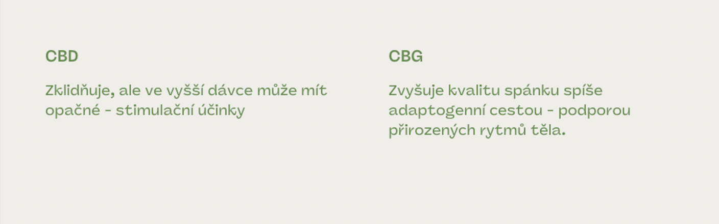 🌿 v anketách uživatelů lidé často popisují, že CBG jim pomáhá lépe usnout, aniž by je uspával